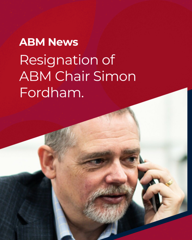 ABM Chair Simon Fordham resigns to pursue a new and exciting high-profile role supporting the UK’s businesses