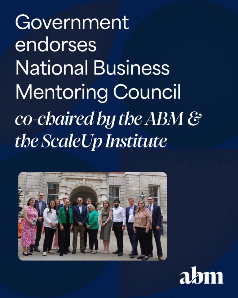 The ABM has welcomed the Government’s Small Business Plan, with mentoring at the heart of its plan to give small businesses the leadership and management skills needed to help them grow and thrive. The measures include a new government endorsed National Business Mentoring Council, co-chaired by the ABM and ScaleUp Institute.