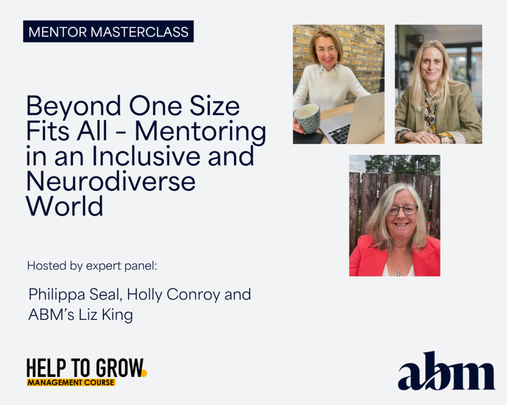 Funded by the Help to Grow: Management Course and designed to equip participants with the confidence and skills to deliver exceptional volunteer mentoring as part of the Help to Grow: Management Course, the next masterclass is Beyond One Size Fits All – Mentoring in an Inclusive and Neurodiverse World