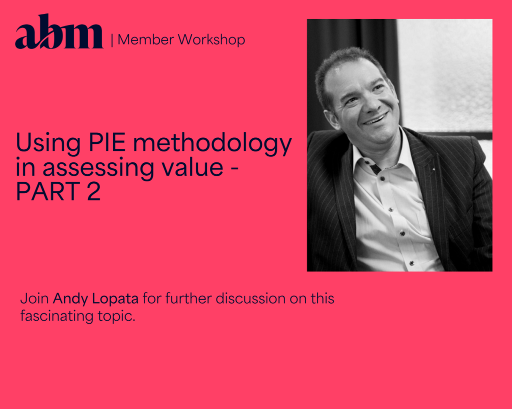 Following the highly successful workshop delivered by member Andy Lopata on ‘Using PIE methodology in assessing value’ we are delighted to welcome back Andy for a follow up session to allow for further discussion on the topics raised.
