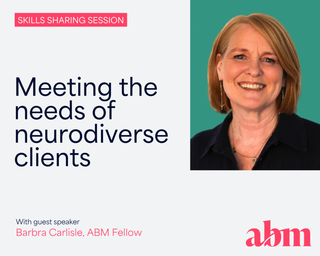 In this ABM Skills Sharing Session, we explored how mentors can best support neurodiverse clients with curiosity, empathy, and adaptability. Led by ABM Fellow Barbra Carlisle, the session aligned with ABM Core Competency 2.1: Awareness of Self, Mentee and Environment, with a focus on Element 2.1.1 – Creating a safe environment to establish trust, respecting cultural nuances and neurodiversity, and tailoring support to the unique challenges of each mentee.